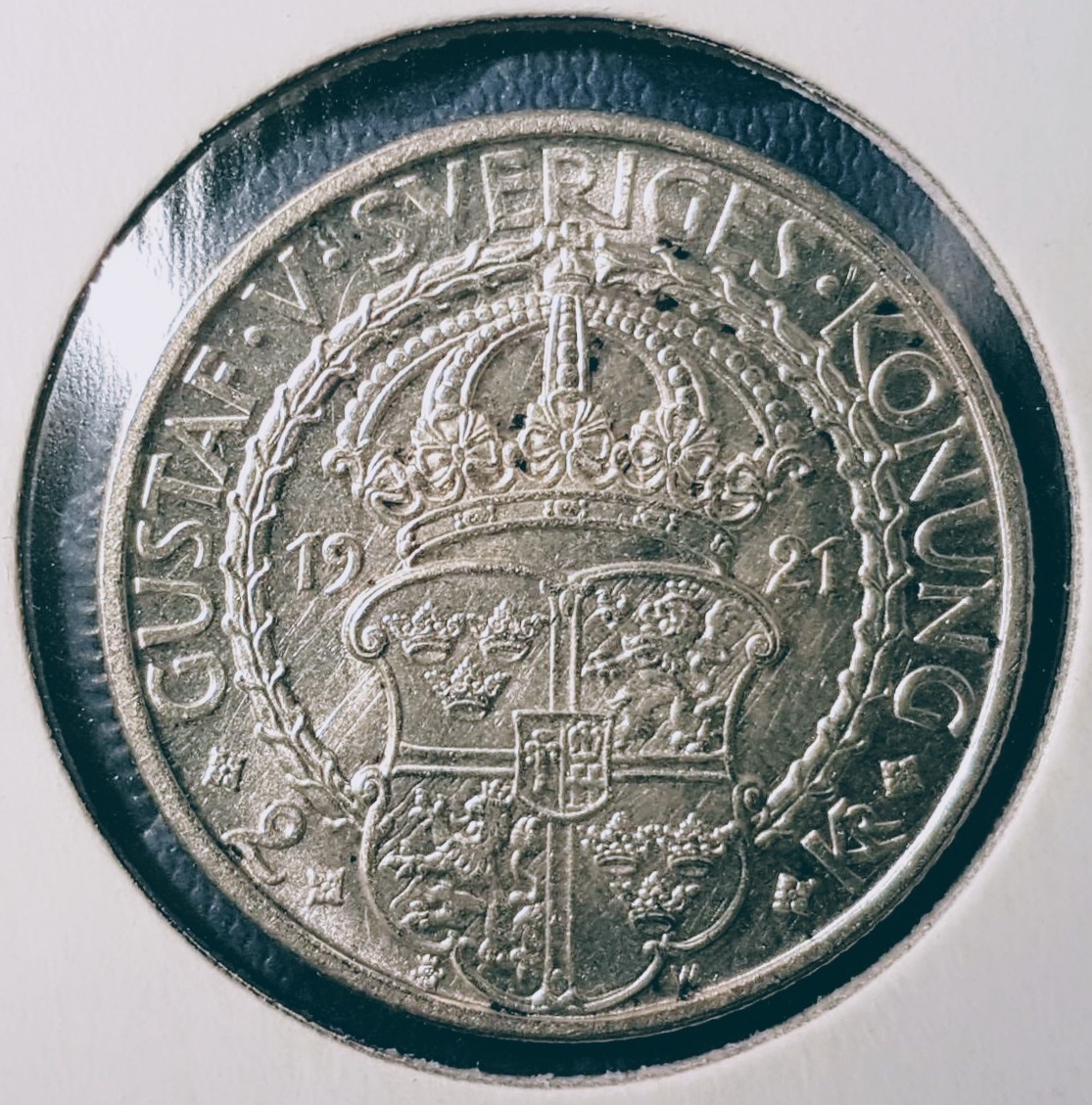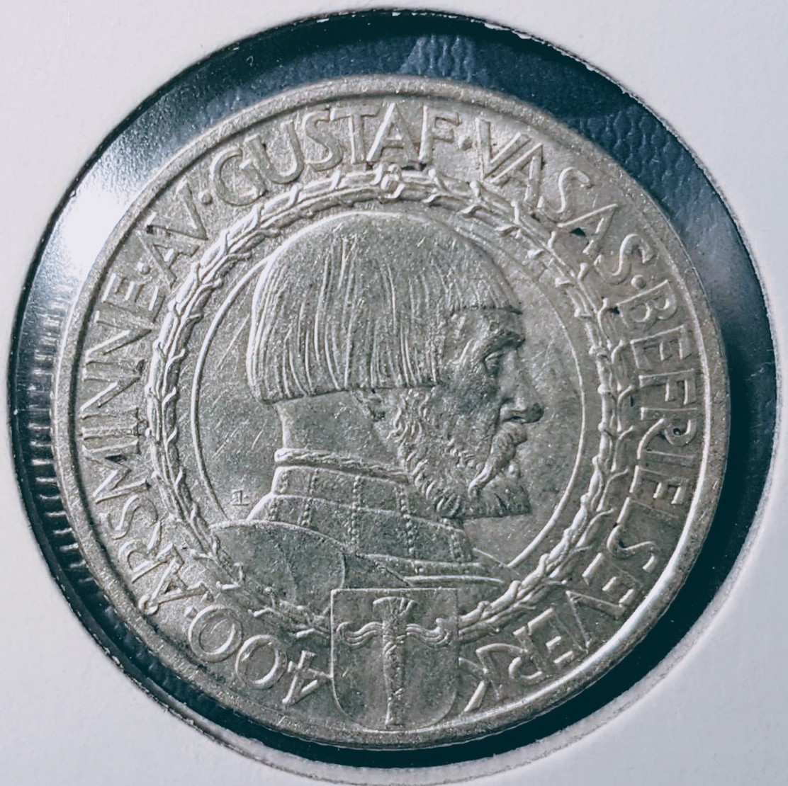 - Moneta jubileuszowa 2 kr 1921 r., wybita z okazji czterechsetnej rocznicy rozpoczęcia wojny wyzwoleńczej przeciwko Danii, fot. zbigur