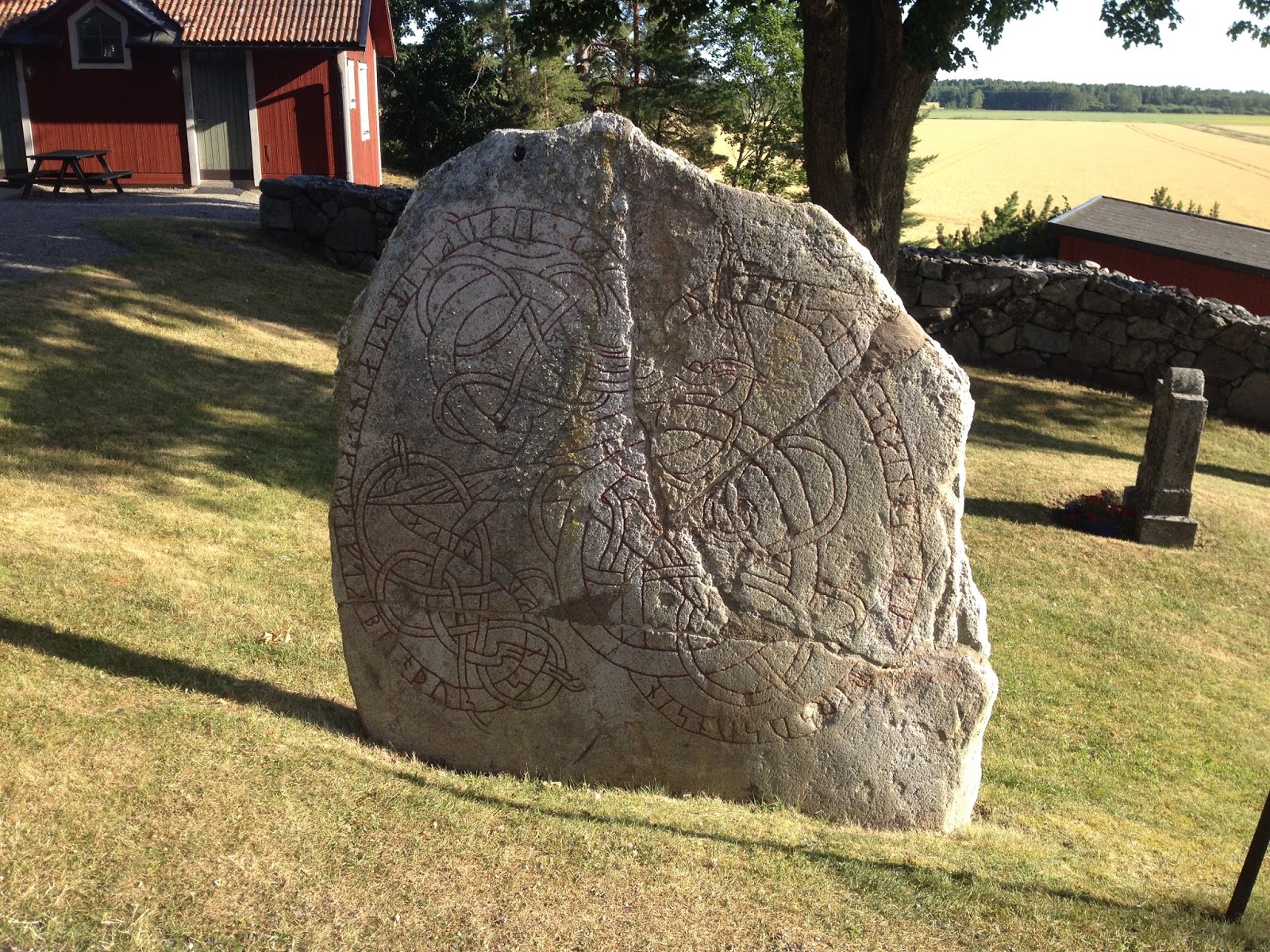 Wokół kościoła znajdują się odrestaurowane kamienie runiczne, a w jego ścianach widoczne są fragmenty innych. Łącznie jest tutaj 15 znanych inskrypcji runicznych.