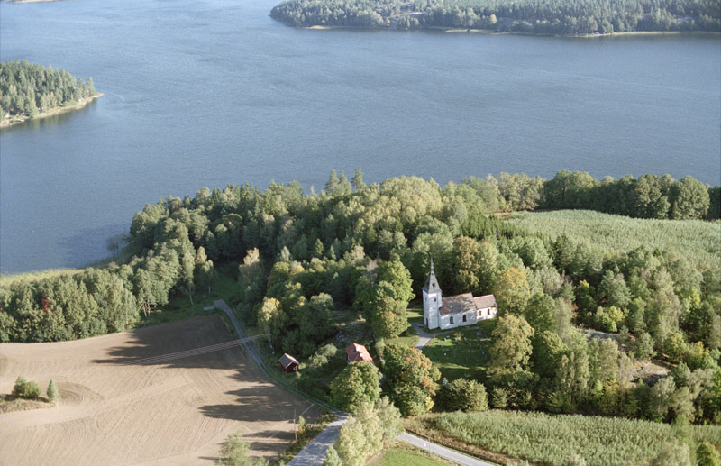 - Kościół w Kattnäs i jezioro Klämmingen (1997), fot. Jan Norrman (RAÄ, CC BY 2.5)