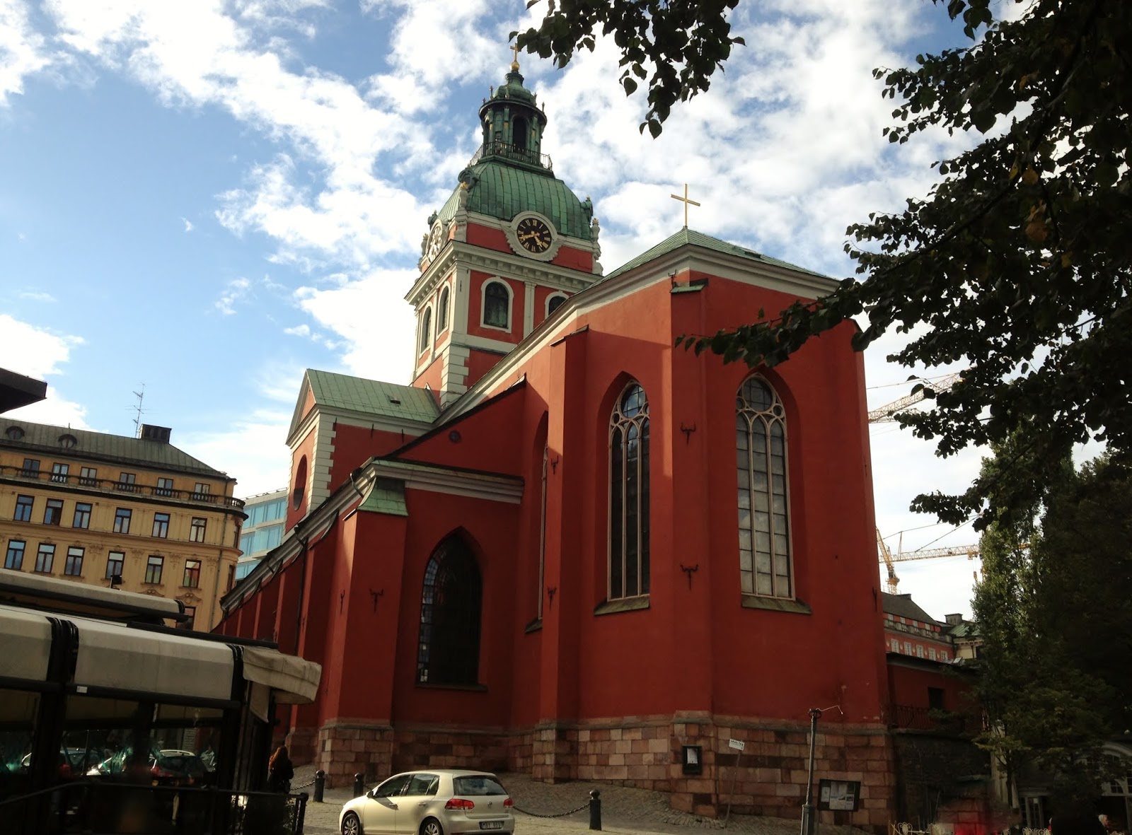 Kościół św. Jakuba od strony Kungsträdgården (2017). Po prawej znajduje się kawiarnia Café Söderberg (ZOBACZ), fot. zbigur