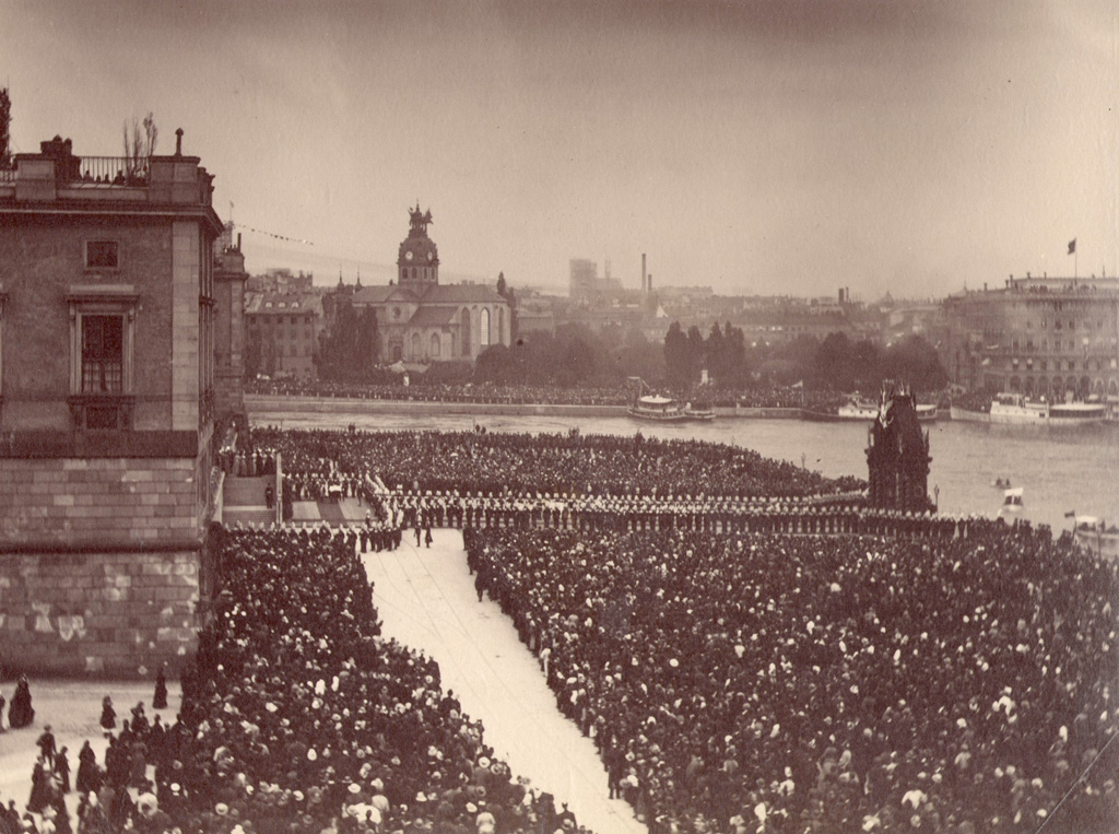 - Skeppsbron, wizyta cesarza Wilhelma II, 1888 r. W głębi widoczny kościół św. Jakuba. Fot. Carl Curman (domena publiczna, RAÄ)