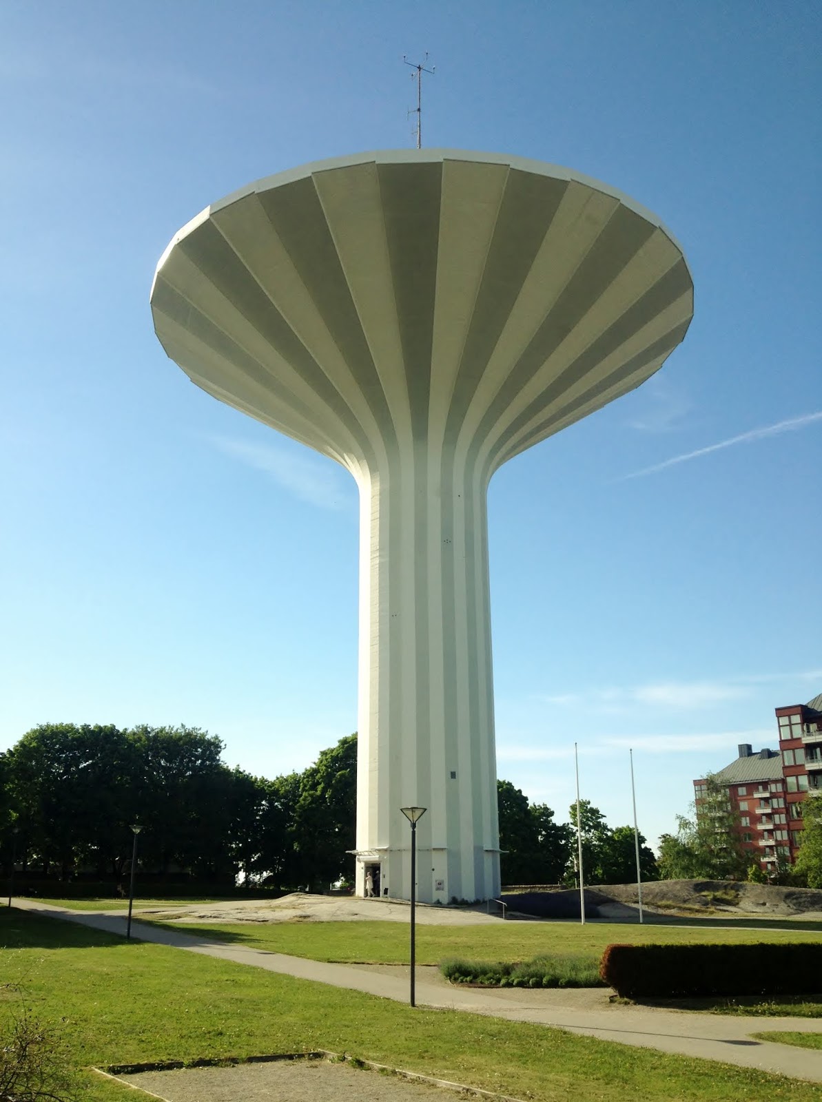| Wieża została zaprojektowana i zbudowana w latach 1954–58 według projektu Sune Lindströma i Poula Kyhla z AB Vattenbyggnadsbyrån (VBB), otwarta 13 maja 1958 r. Znajduje się na północ od centrum miasta, przy Dalbygatan 4 (dzielnica Norr). 🌐 |